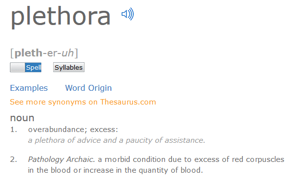 I do so like that word! Plethora. It has a sort of ring to it don’t you think? So what does it mean?