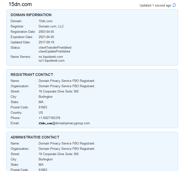 So what does this tell you. It tells you that I’m a dinosaur in internet marketing terms. It tells you that I registered 15dn.com way back in 2003, 15 years ago now. I actually registered it in 1998 but back then it was FifteenDegreesNorth.com and that WAS a pain writing out emails so I dumped it in favor of 15dn.com in 2003. I liked how short it was 🙂