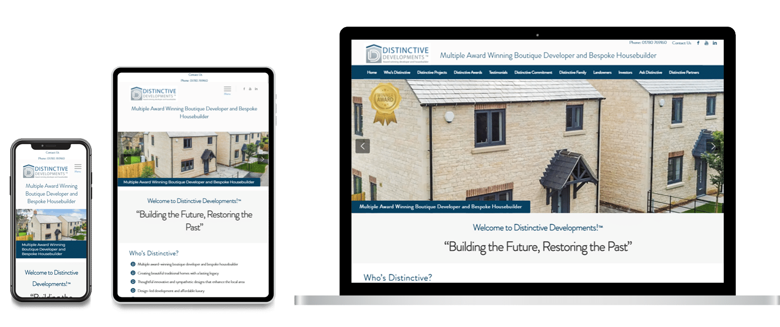 We were approached by Distinctive Developments to meet their new web design needs. As a highly exclusive boutique property developer and bespoke housebuilder that has won multiple awards for their work in small to medium-sized projects, we knew their site had to reflect the uniqueness and artistry involved in what they design and build. Richard from Distinctive has an incredible eye for detail.